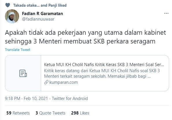 Seorang tokoh di twitter menyampaikan dengan jujur, beliau adalah Fadlan R Garamatan